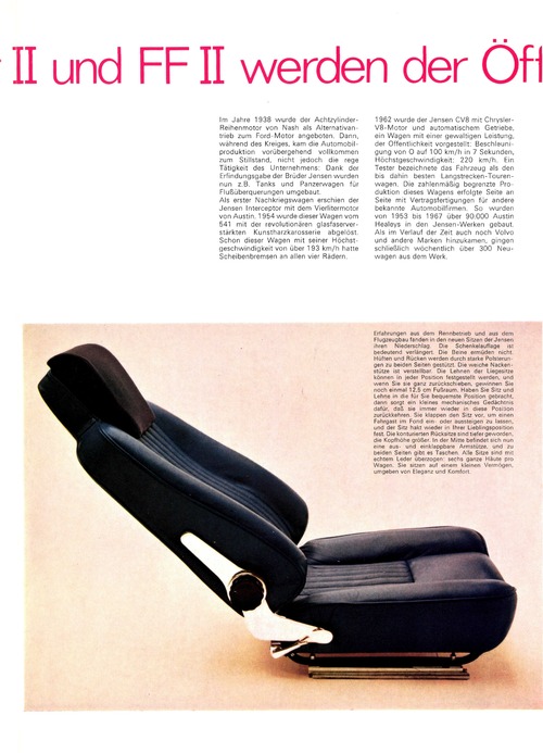 | Fahrzeuge in diesem Faksimile | Jensen FF II (1970) Jensen Interceptor II (1970) |