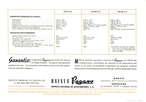 ... •>'• w u ui- T ô T > i / A i c i , - i „ n \ i i n 7 ^ u n „ I C I ^ â " 0 \ — 1 „ i „ u i « \LI a IOU mm. \o a o j ) regaoïe. 4,100x1,292 (ou 1,271). 1060 Kg. 6 , 5 0 x 1 6 62,8. Supérieur à 185. Moins du 12. 132 35,88 195 5000 4,100x1,304 (ou 1,271). 1060 Kg. 6,50x16-7,00x16 alternativement. 64,6 Supérieur à 250. Moins du 9. 132 35,88 195 Considérant une taux de compression dans le compresseur de 1,5/1 on a t ta in l'extraordinaire chiffre de 6000. ! / S È È / 5 l l A M 1 0 * La garant ie yCe^cL*^Q\J\ couvre ces voitures est large et loya le . Les pièces sont garant ies pendant trois ans. Les accesoires sont toujours fournis par des spécialistes de première catégor ie . A I S la meil leure g a r a n t i e c o u v r a n t la fl^^a^-o est of fer te par l ' o r g a n i s a t i o n s c i e n t i f i q u e de c o n t r ô l e et de l a b o r a t o i r e qu i assure à nos usines la possibi l i té d ' a p p l i q u e r les p r o g r è s s ' o f f r a n t chaque jour à la technique de construction des voitures de g rande classe. S O C I E T E A N O N Y M E AU C A P I T A L DE 2 . 1 0 0 . 0 0 0 . 0 0 0 P E S E T A S A d r e s s e T é l é g r a p h i q u e : A u t o c a m i o n e s USINES J ? EMPRESA NACIONAL DE AUTOCAMIONES, S. A. M A D R I D L A G A S C A , 88 * T é l ...