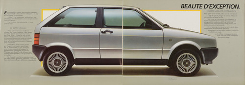 ... n automobile, comme dans tous les domaines, il y a la règle - les voitures ordinaires - et il y a l’Exception : la Seat Ibiza. Libiza? Une esthétique audacieuse, une mécanique révolutionnaire, une conception réso lument originale. Une voiture exceptionnelle. A tout point de vue. LA “PATTE” GIUGIARO Pour concevoir une meilleure voiture, il y a une solution : faire appel aux plus grands concepteurs. C’est ce que Seat a fait : l’Ibiza est née d’une étroite collaboration entre notre bureau d’études de Martorell et ceux de Porsche pour le groupe propulseur, Karmann pour la conception intérieure et Giugiaro pour le stylisme. Pour l’Ibiza, Seat voulait privilé gier l’aspect fonctionnel sans délais ser la personnalité. C’est pourquoi nous avons demandé à Giugiaro, le grand styliste automobile, de penser “Pratique mais Sportif’ et de dessiner une voiture aussi agréable à voir qu’à vivre et à conduire. Le résultat, vous l’avez sous les yeux : une ligne carrée, agressive, ramassée. Un profil franc, un dessin efficace, différent, remarquable BEAUTE D'EXCEPTION. DERRIERE LA BEAUTE, L INTELLIGENCE Mais après avoir séduit, il faut savoir convaincre. Large de 1,61 m, longue de 3,64 m, lib iza est une voiture qui aime la ville. Sur route, sa carrosserie enveloppante, le dessin en spoiler de son parechocs, son capot plongeant lu i confèrent un CX de 0,36. ...