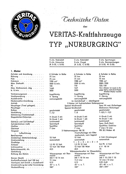| Fahrzeuge in diesem Faksimile | Veritas Nürburgring (1952) |