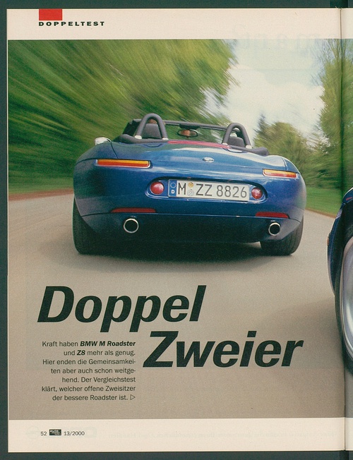 ... ZZ 8826 ìttattttifeÉÉiÉ Doppel Kraft haben BMW M Roadster und Z8 mehr als genug. Hier enden die Gemeinsamkei ten aber auch schon weitge hend. Der Vergleichstest klärt, welcher offene Zweisitzer der bessere Roadster ist. t> Zweier D O P ...