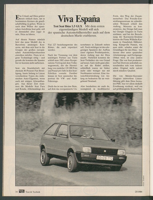... werden. Nach der Trennung von dem mächtigen Partner aus Turin schloß man 1982 einen Koope rations-Vertrag mit dem Volks wagenwerk, der die Herstel lung von zunächst 120 000 Polo und Passat pro Jahr in den Seat- Fabriken vorsieht. Darüber hinaus ist Seat spanischer Im porteur für VW- und Audi- Fahrzeuge. Doch das ist nur das eine Bein, auf dem das reorganisierte Un ternehmen in Zukunft stehen soll. Noch wichtiger ist den ehr geizigen Spaniern der Aufbau einer eigenen Produktpalette, deren Anfang nun der Ibiza macht. Natürlich konnten die Seat-Techniker ein von Grund auf neues Auto nicht ganz allei ne auf die Räder stellen, schließlich waren sie bisher mehr oder weniger nur mit Nachbauten vertraut. Eine Au tomobilentwicklung von An fang an bedeutete für sie weit gehend Neuland. Also beschritten sie auch da, wenngleich in modifizierter Form, den Weg der Zusam menarbeit: Das Porsche-Ent wicklungszentrum im schwäbi schen Weissach erhielt den Auftrag, Motoren zu kon struieren, das Design ließ man bei Giorgio Giugiaro in Turin zeichnen, und bei der Berech nung der Karosserie-Struktur leistete die Firma Wilhelm Karmann in Osnabrück Hilfestel lung. Klangvolle Namen, wie man sieht, schufen somit die Grundlagen für den Ibizawas daraus aber unter spanischer Abstimmungsund Fertigungs- Obhut wird, ist eine andere Frage. Die von Seat ...