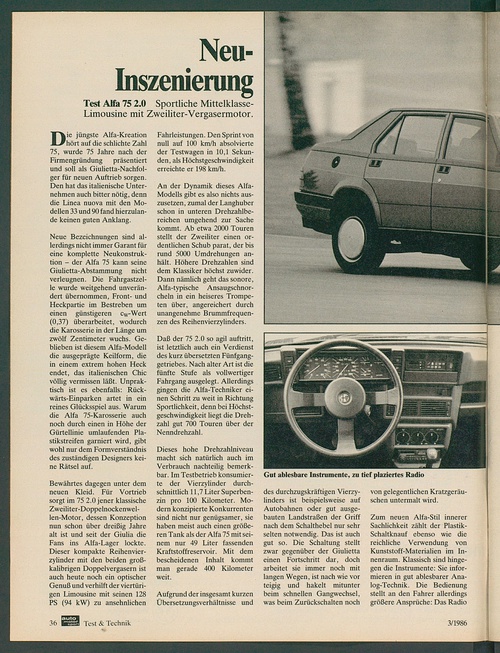 | Fahrzeuge in diesem Faksimile | Alfa Romeo 75 2.0 (1986) |