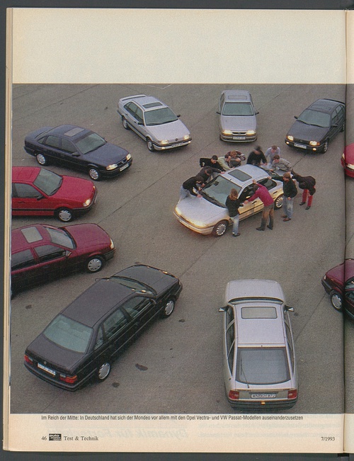 ... ■1 lm Reich der Mitte: In Deutschland hat sich der Mondeo vor allem mit den Opel Vectraund VW Passat-Modellen auseinanderzusetzen Test & Technik 7/1993 m ! ;mm ...