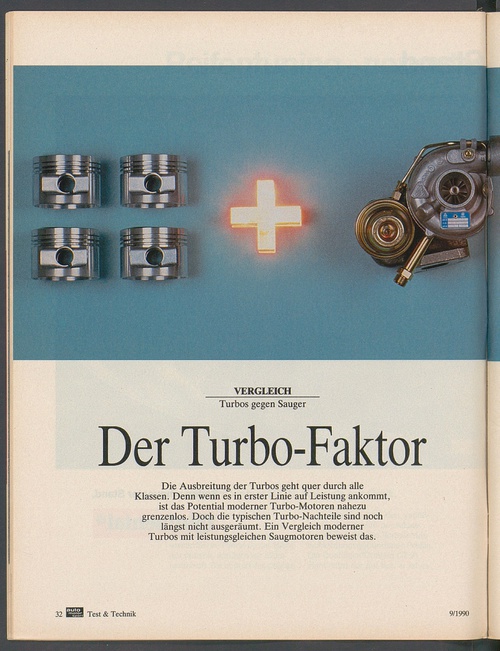 ... Turbos gegen Sauger Der Turbo-Faktor Die Ausbreitung der Turbos geht quer durch alle Klassen. Denn wenn es in erster Linie auf Leistung ankommt, ist das Potential moderner Turbo-Motoren nahezu grenzenlos. Doch die typischen Turbo-Nachteile sind noch längst nicht ausgeräumt. Ein Vergleich moderner Turbos mit leistungsgleichen Saugmotoren beweist das. 32 ËH Test & Technik 9/1990 ...